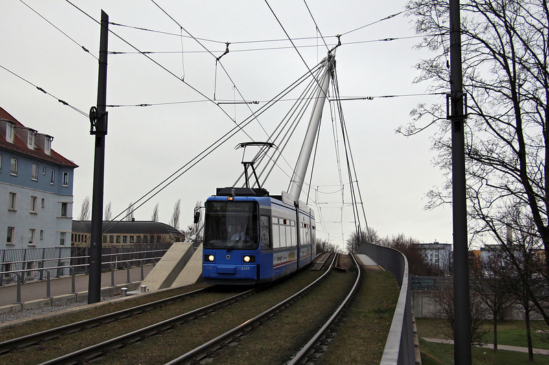 До речі кажучи, саме з ім'ям Кеніга мюнхенці асоціюють «ренесанс» трамвая – пост голови транспортної компанії Мюнхена він займає з 1992 року. На новій лінії довжиною 4,1 кілометра спеціально для трамвая побудували ось такий міст.
