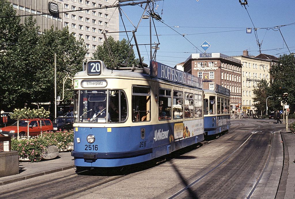 У столиці землі Баварія електричний трамвай з’явився у далекому 1886 році і до середини 1960-х років стрімко розвивався. Та коли місто отримало право проведення Олімпійських ігор 1972 року, влада вирішила – «трамвай це не модно», почалося стрімке будівництво метрополітену. Закривали трамвайні лінії, збудовані буквально декілька років до того, за останнім словом техніки! Нищення трамвая тривало аж до кінця 1980-х років, коли врешті зрозуміли: трамвай може доповнити метрополітен, і це швидше й дешевше, ніж і далі будувати підземні магістралі. Детальна історія Мюнхенського трамваю викладена на сайті Олександра Єлагіна, звідки зацитуємо коротку історичну довідку.