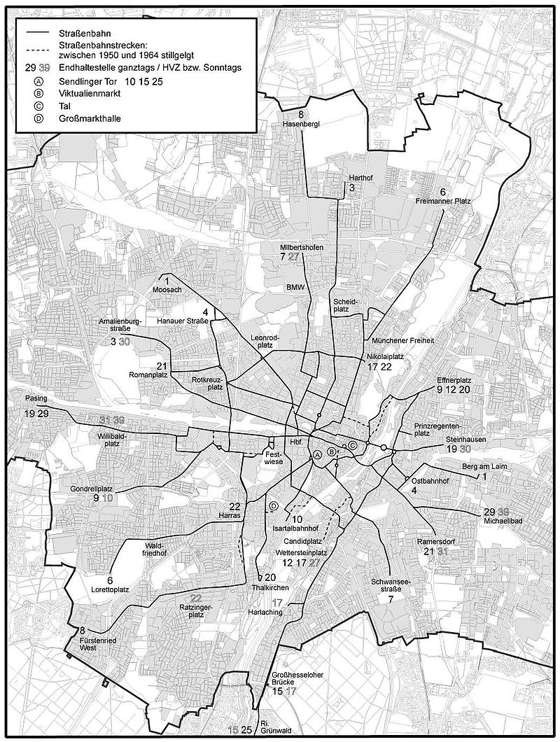 Так, наприклад, в 1962 побудована році швидкісна лінія Freimann була закрита в 1967 році. Вона після переобладнання увійшла до складу наземної ділянки лінії метро U6. Побудована в 1973 році року протяжна лінія в район Перл була повністю закрита всього лише сім років потому, у 1980 році. Припинилися і закупівлі нових вагонів – було вирішено, що наявного парку вистачить до тих пір, поки всі трамвайні лінії не будуть закриті і замінені на метро або автобус.