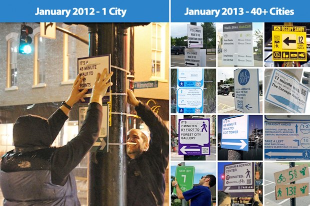 На створення покажчиків Ігоря Скляревського, якого багато хто знає завдяки його проектами міської навігації, надихнула американська ініціатива Walk [Your City]. Але в іноземному варіанті не було гострої соціальної складової: знаки просто повідомляли, що до найближчої пам'ятки п'ять хвилин ходьби. Додавши вказівниками гостроти, Ігор разом з трьома однодумцями раннім суботнім ранком сів у машину і відправився в партизанський тур по Києву.