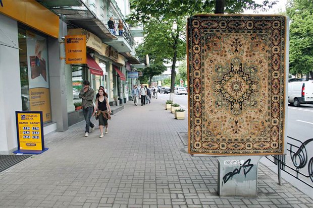 Іспанський активіст вирішив облаштувати місто за допомогою речей з власного будинку. Так біля лавки з'явилися килим з оленями і в'язані серветки.