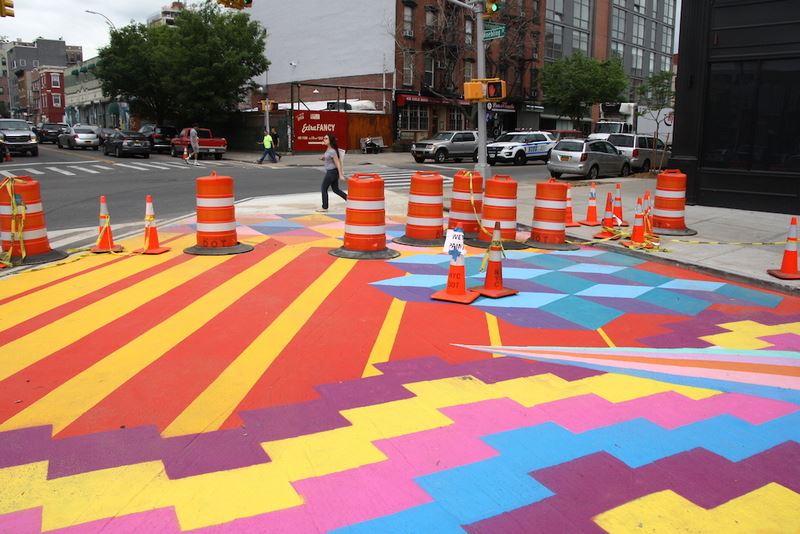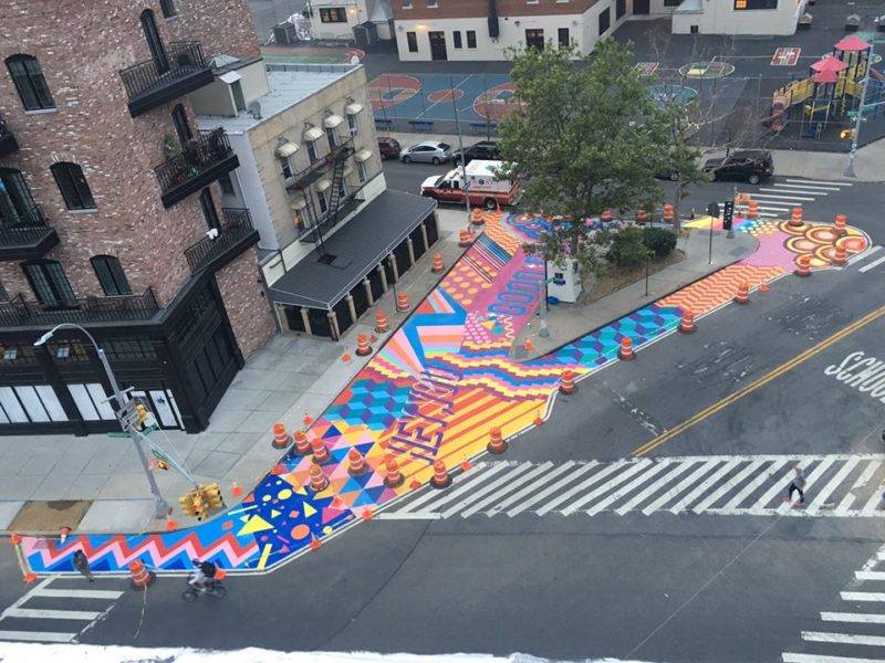 Як створити публічний простір замість асфальтованої площі? Розмалювати її! І встановити прості тимчасові елементи - огородження, вуличні меблі, озеленення. Джерело фото - фейсбук-сторінка урбан-блогера Аркадія Гершмана.