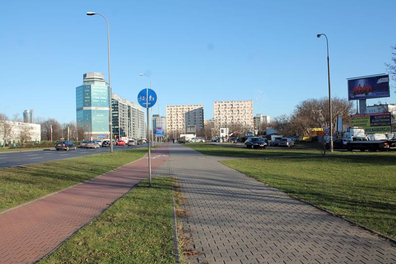 Від Варшави Західної до центру – 4 квартали. Тому, аби краще пізнати місто йдемо пішки. Дорога пряма – Єрусалимська алея (Aleje Jerozolimskie). Біля тротуару є велодоріжка. Вона вимощена фемом іншого кольору.