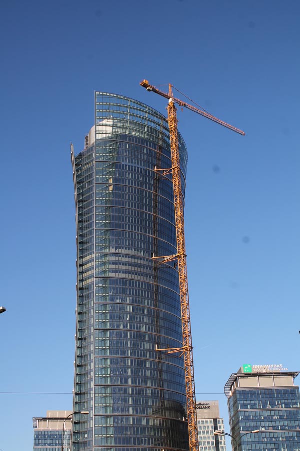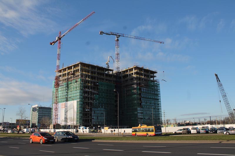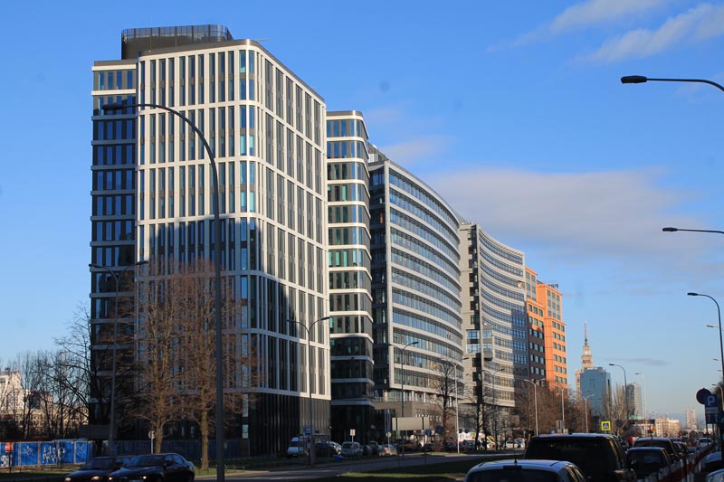 У Варшаві не відмовляються будувати і хмарочоси. Пройшовши далі вулицею бачимо скляні висотки.