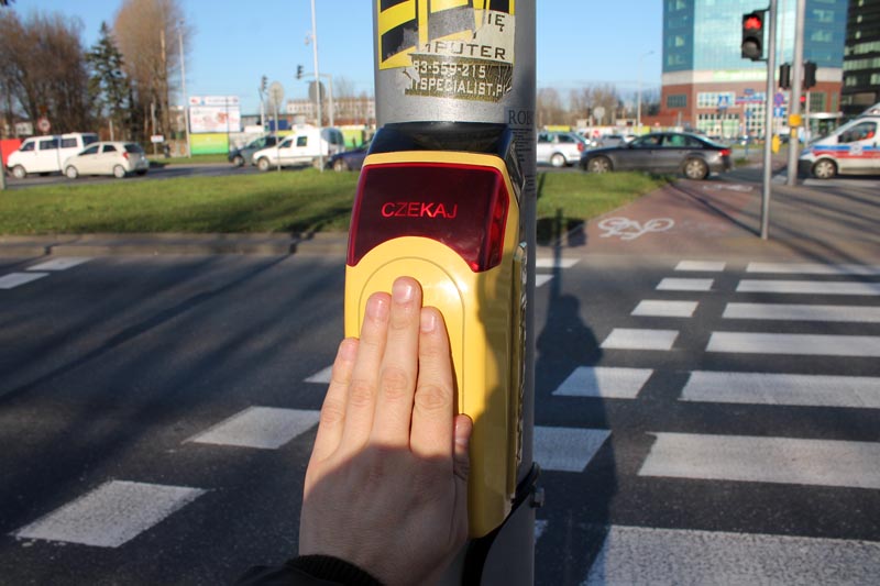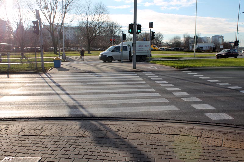 Більшість варшавських перехресть гарно облаштовані. По-перше, це спеціальна плитка безпосередньо перед пішохідним переходом для людей з проблемами зору.