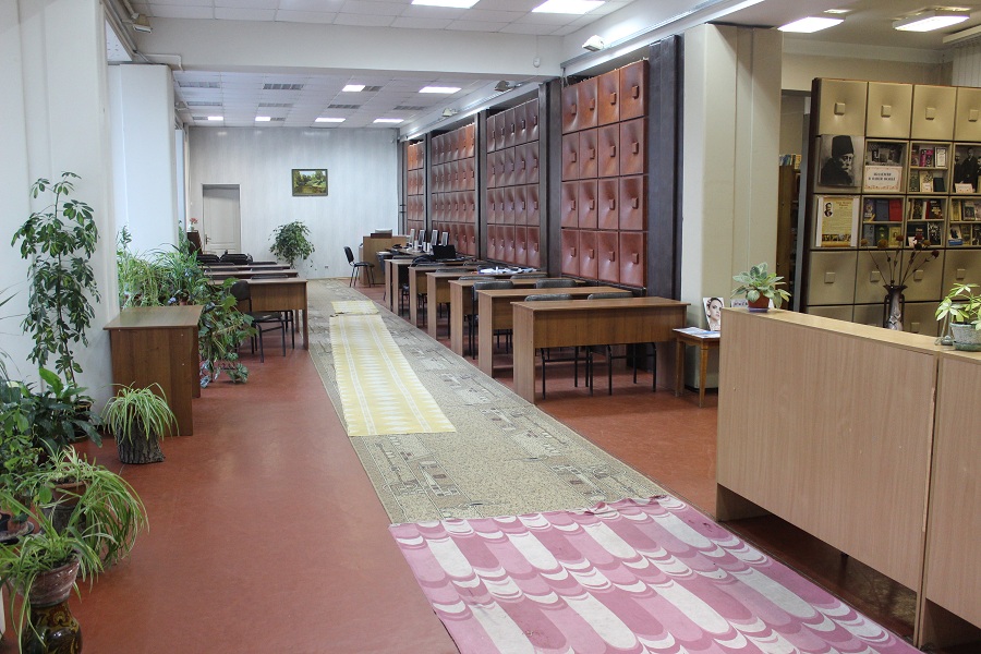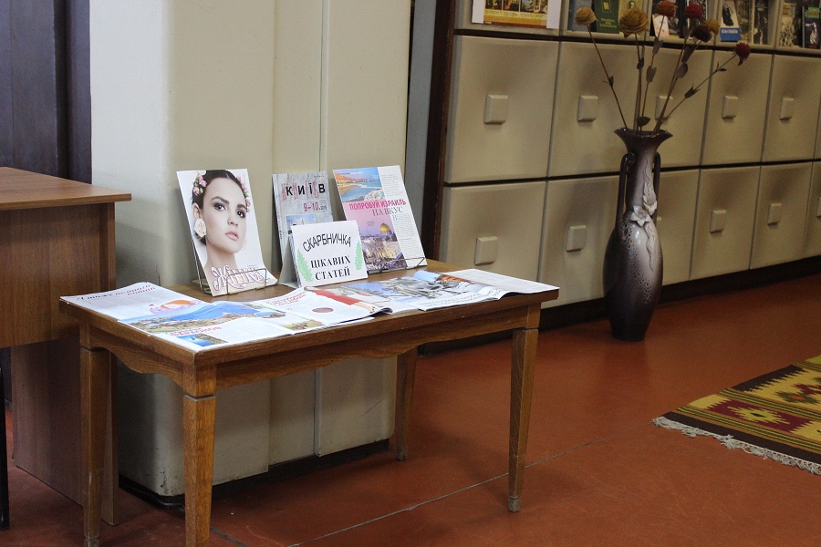 Виглядає невигадливо. Звичайний читальний зал радянської епохи – кілька рядів столів зі стільцями в приміщенні близько 100 квадратів. Є закуток з книжковими полицями і бюстом великого українського письменника. Всього тут, до речі, приблизно 78000 книг. Багато сучасної поезії та прози, періодики для дітей і дорослих.