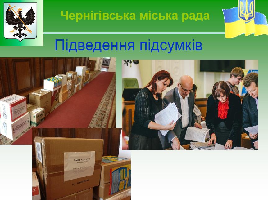Було визначено 16 місць голосування: це бібліотеки і 6 шкіл у районах, де немає бібліотек. Ми розробили бланки для голосування, і кожен громадянин Чернігова мав можливість проголосувати по двом категоріям проектів – окремо за поточними, окремо за капітальними видатками. Голосувати можна було, пред’явивши паспорт, його дані вводилися у єдину базу даних, аби уникнути подвійного голосування. Голосування тривало 2 тижня, за проекти по капітальним вкладенням було подано 6 307 голосів, за проекти по поточним вкладенням – 5 326 голосів.