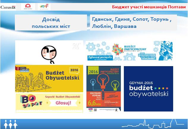 Ідея проекту полягала в тому, аби три міста спробували зробити модель партиситипаторного бюджету. Ці 8 місяців ми їх підтримували – проводили семінари для міської ради та активістів, возили в Польщу, підтримували консультаційно і фінансово, допомагали коштами проводити рекламні кампанії. Фінансовим партнером проекту стала Польсько-Канадська програма розвитку демократії.