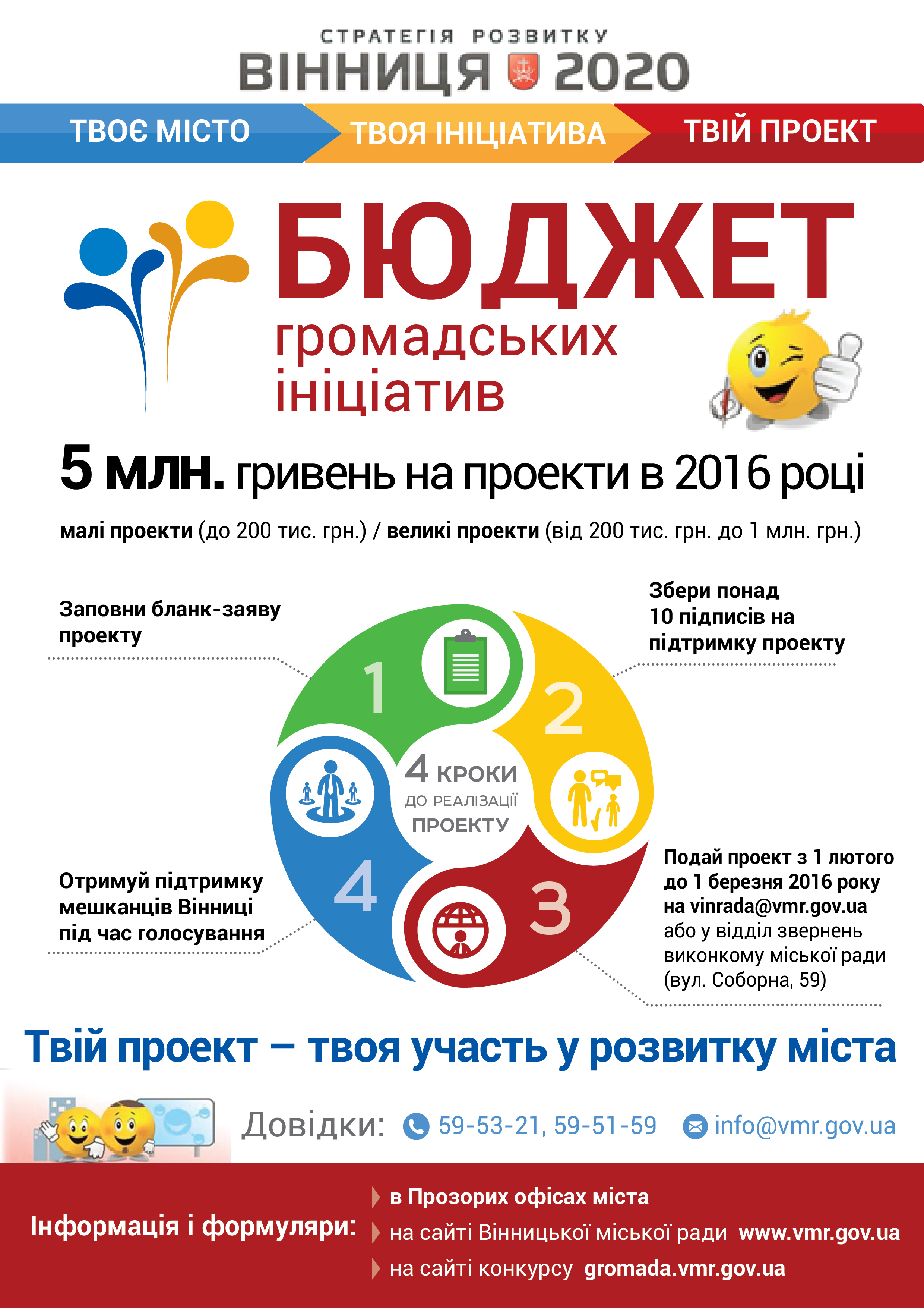 - у паперовому вигляді за адресою: м.Вінниця, вул. Соборна, 59 з поміткою «Бюджет громадських ініціатив».