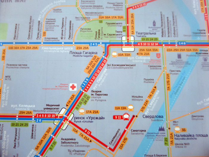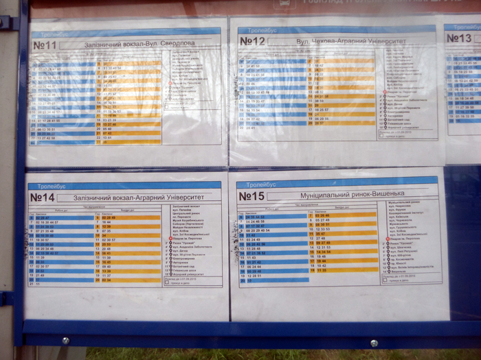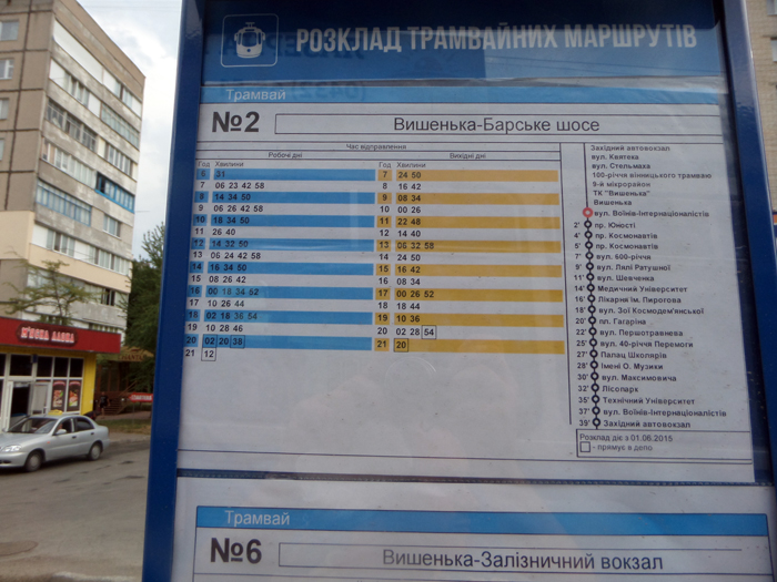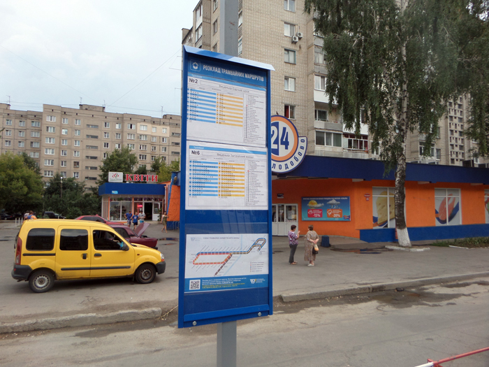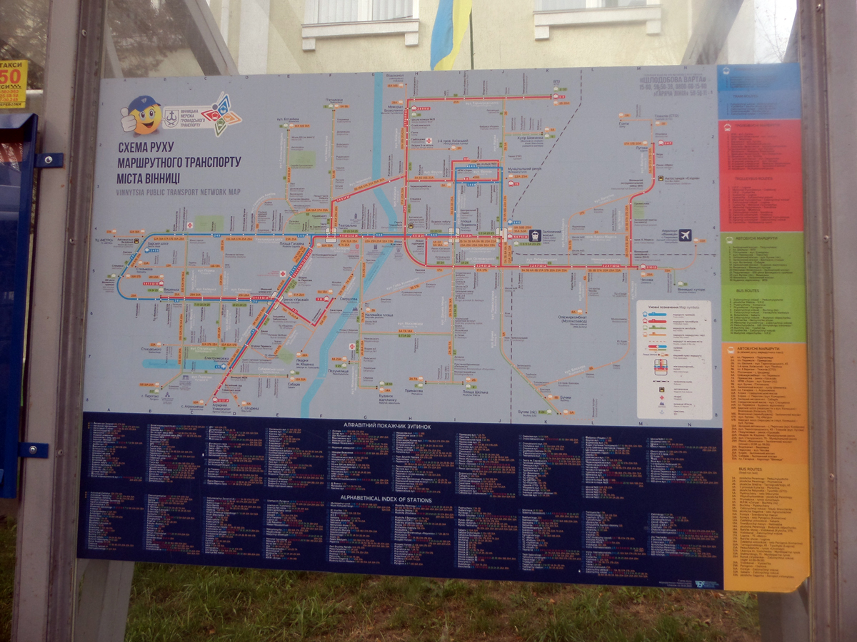 Цього року на зупинках громадського транспорту Вінниці встановлюють щити з інформацією про похвилинний розклад руху та схемами маршрутів. Почали з трамваїв - зараз вже ними обладнані майже всі зупинки і тролейбусів. Також дуже зручні загальні схеми маршрутів - ну і зупинки самі по собі як для України зразкові. Фото - не центральні "показушні" зупинки.