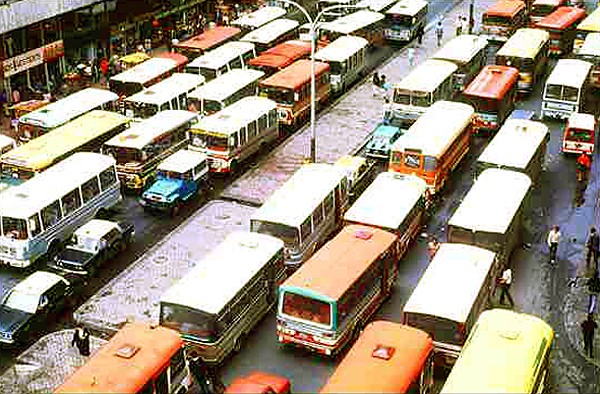 Основним видом громадського транспорту в Боготі завжди були "басети" – невеликі автобуси, що належать самим різним невеликим фірмам. Їх було так багато, що по деяких вулицях вони йшли в кілька рядів суцільним потоком. Чесно кажучи, взагалі незрозуміло, яким чином таке величезне місто мігло вільно пересуватися виключно на наземному транспорті, причому без організації для нього якого б то не було пріоритету. Але, тим не менш, це факт. Правда, слід зауважити, що рівень автомобілізації тоді був не дуже високим: щось близько 700000 автомашин у місті.