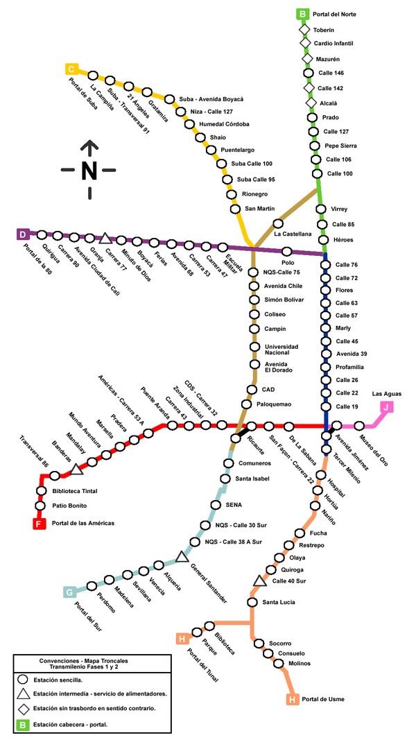 4. На лініях працюють тільки автобуси TransMilenio. Інші перевізники не допускаються.