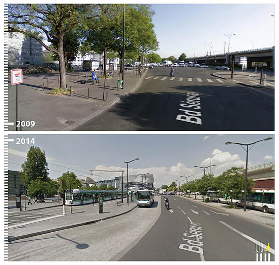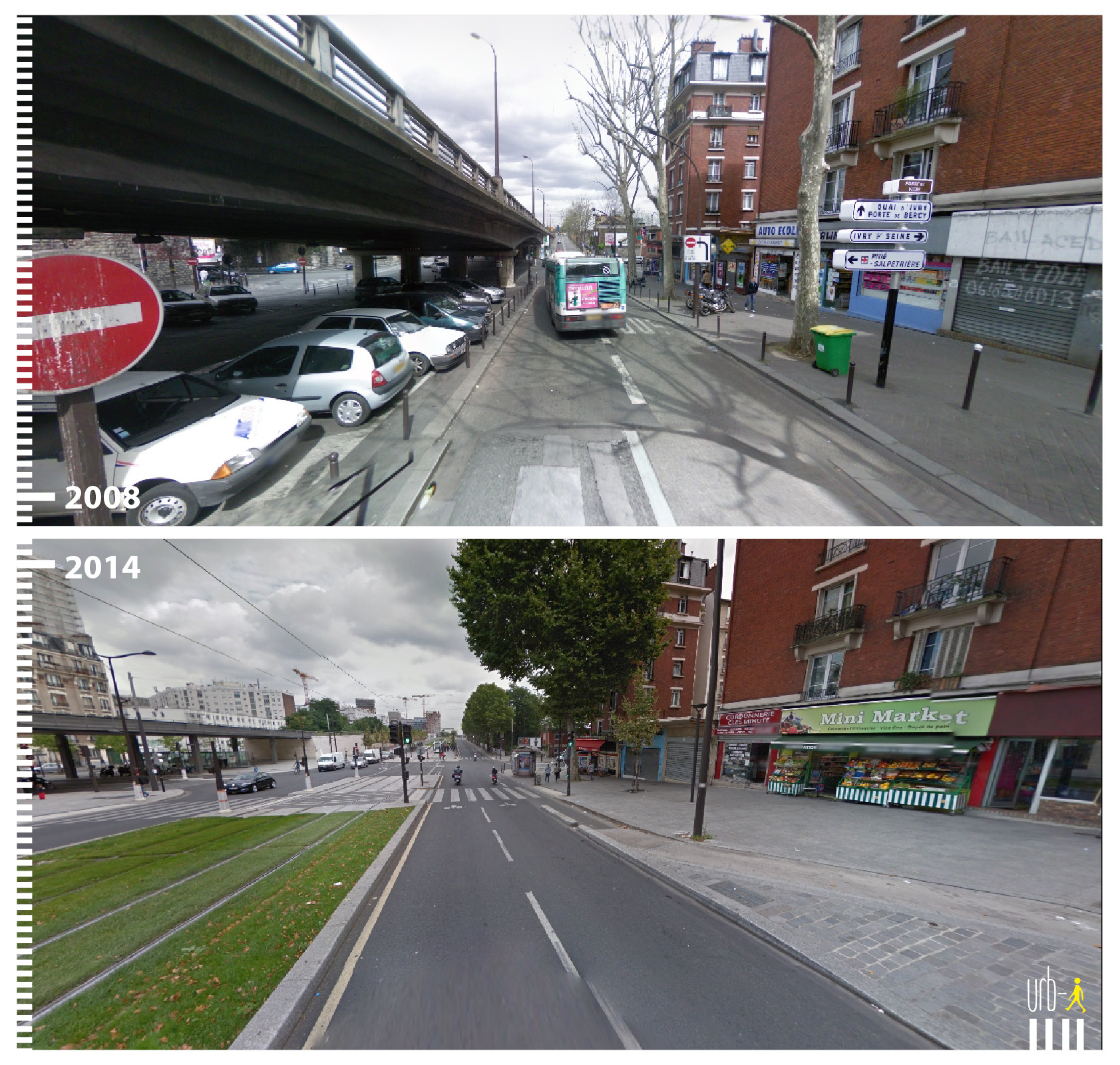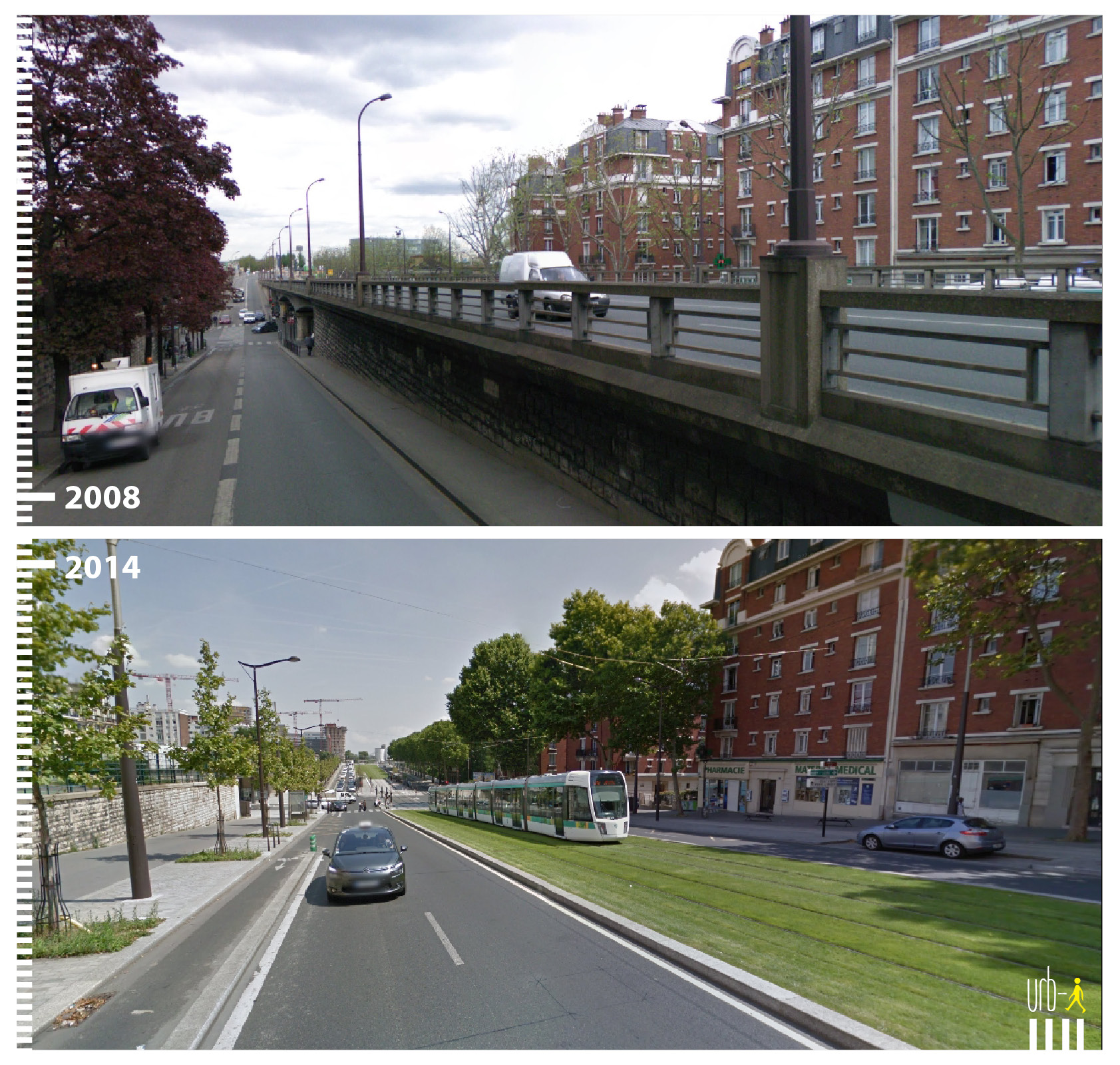 Продовжимо про знесення естакад. Тут у Парижі замість неї збудували лінію швидкісного трамваю.
