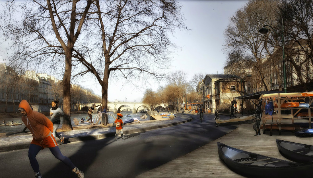 Автомобільний рух по набережних Сени було відкрито у 1960-ті роки. Це був вимушений захід, пов'язаний з ростом числа машин і необхідністю зберегти історичну забудову в центрі. Так без особливого збитку для міста було знайдено місце для чотирьох нових смуг руху. Але за півстоліття до парижанам прийшло усвідомлення того, що автомобілі – не хазяї міста. Скоро тут можна буде гуляти, грати в петанк чи футбол і їстии смажені каштани. Торгові точки пропонується обладнати в пришвартованих до набережної баржах і корабликах, а з тунелю на західній стороні дороги можуть зробити нічний клуб.