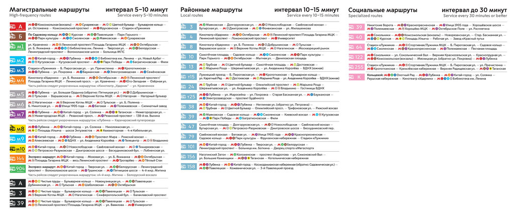 - Середні, або районні, маршрути пов'язують окремі райони з центром Москви.