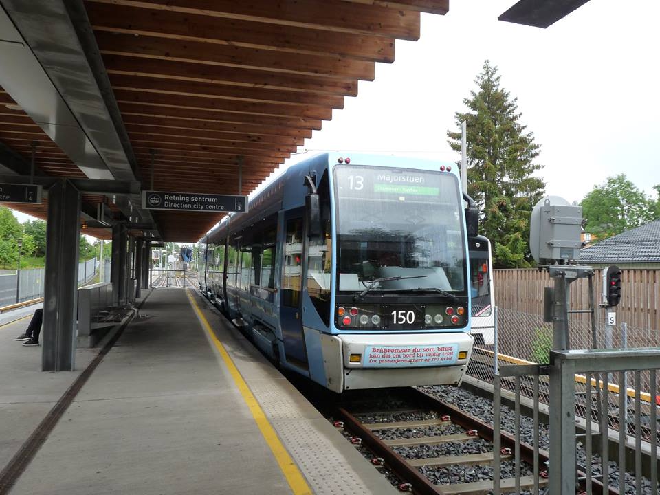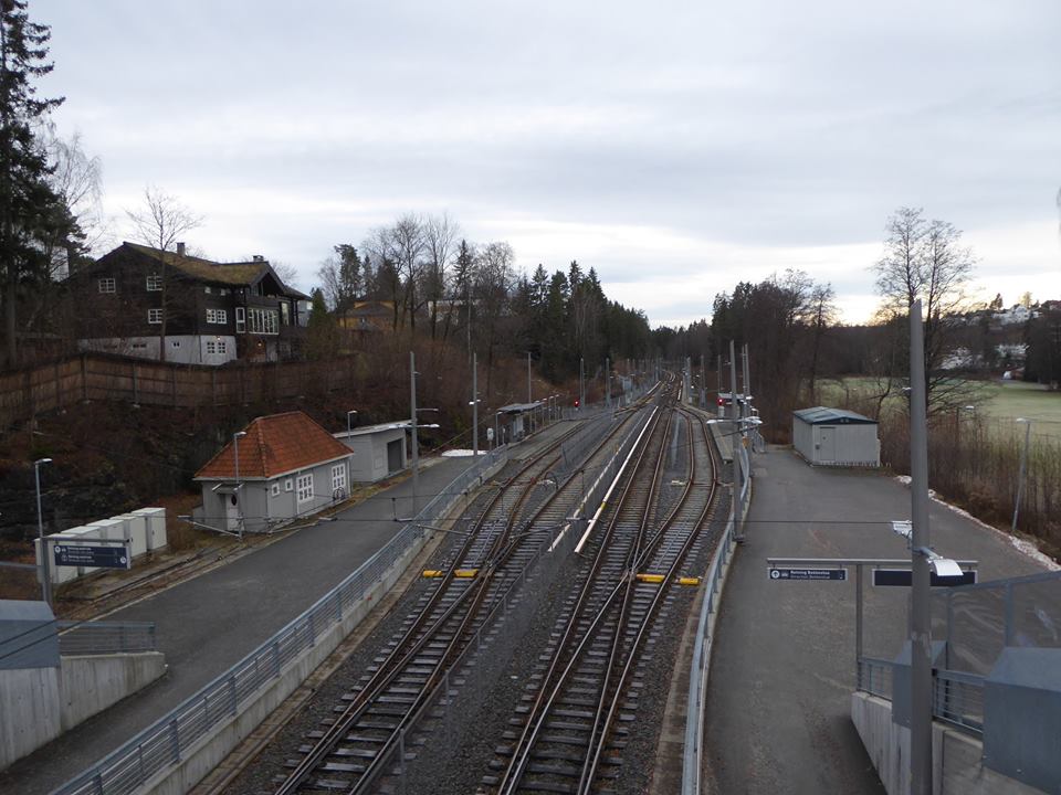 9. А це вже фото з більш цікавої станції Bekkestua. Якщо придивитись, то видно як трамвай їде в гору, це зроблено для того, щоб платформи метро та трамвая були однієї висоти.
