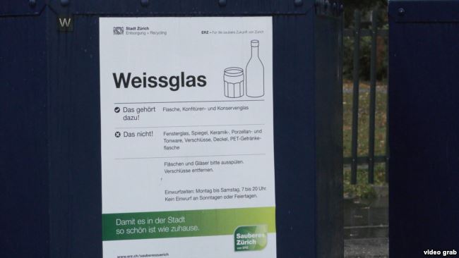 Як з домашніх відходів отримують золото і енергію, чому не можна викидати сміття в неділю і чи є в Швейцарії сміттєзвалища. Кореспондент «Настоящего времени» у листопаді 2017 року поговорив з Даніелем Еберхардом, співробітником Управління з переробки відходів в Цюріху.