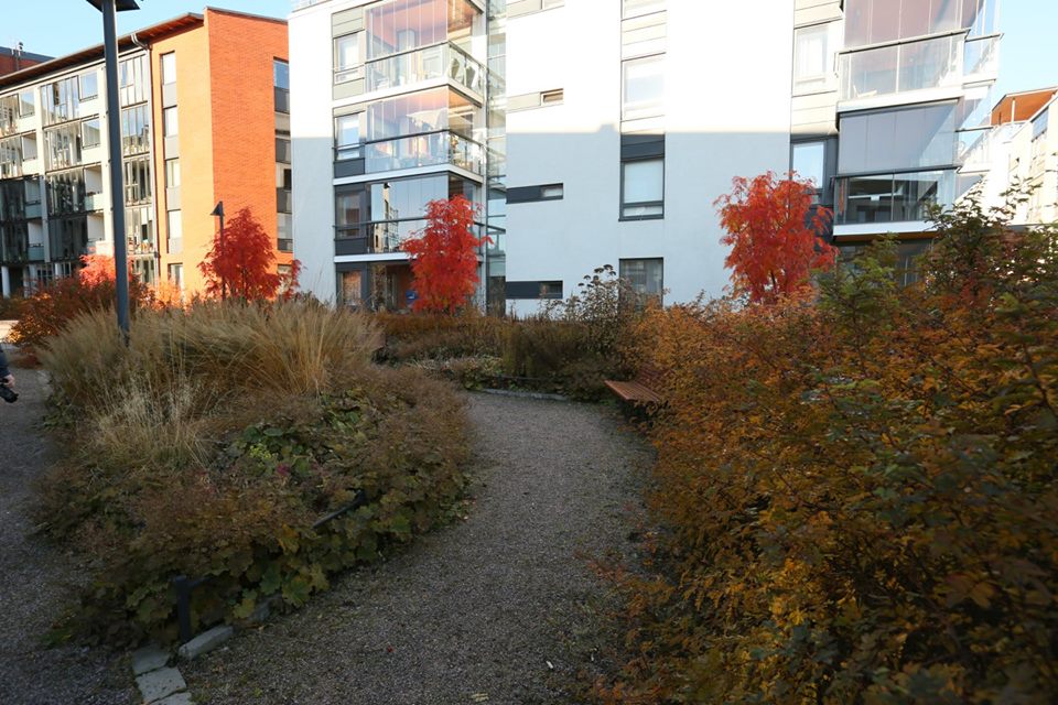 У Гельсінкі до озеленення прибудинкових територій ставляться дуже ретельно – використовуючи і дерева, і чагарники, і ліани, у житлових кварталах створюють справжні зелені оази, які можуть конкурувати з парками та скверами.
