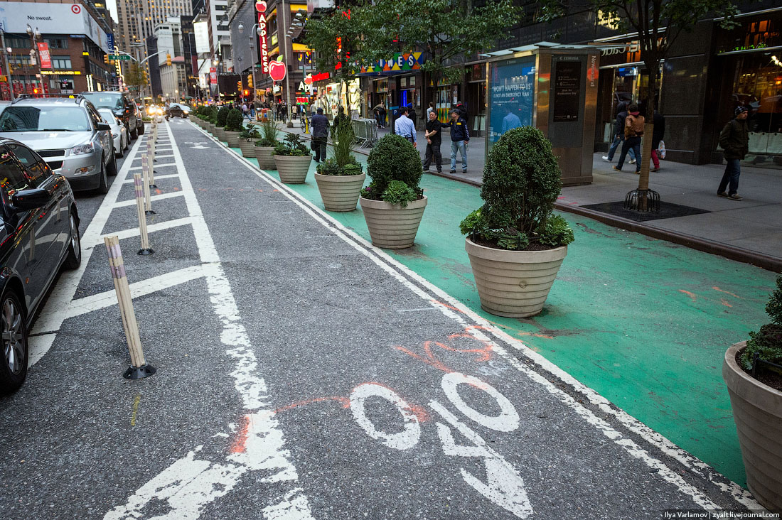 - Будівництво виділених велодоріжок в Нью-Йорку почалося з 9 Авеню, де велосипедистів від вулиці відокремлює лінія парковки. Як вам вдалося здійснити цей проект?