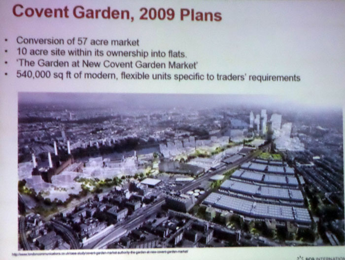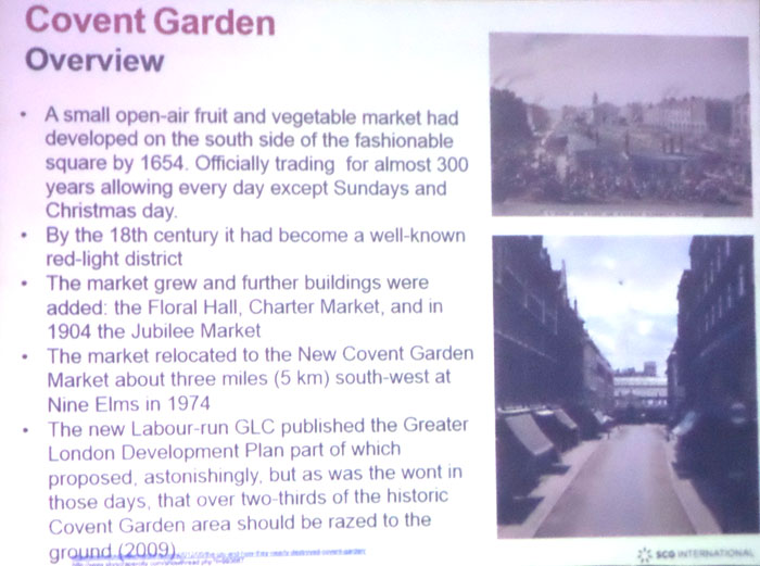 Ще один приклад – реновація ринку Епл-Маркет. Кавент Гарден – відома ринкова площа, тут завжди був ринок фруктів і овочів, колись вона була і «вулицею червоних ліхтарів». Нещодавно девелопери пролобіювали свої інтереси через парламент – мовляв, площа простоює, і на місці великого двоповерхового ринку давайте побудуємо 17 поверхів. Затвердили план забудови.