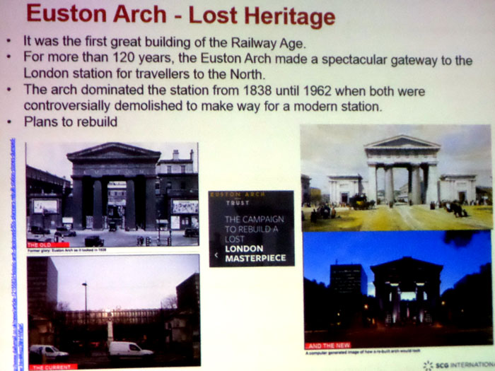 Ставлення до міста, до історії – це багато в чому питання поколінь. Одне покоління хоче зруйнувати і все побудувати заново – багато що в Лондоні пішло під знос нашими «радянськими» людьми. Інше ж покоління хоче додати щось нове, поліпшивши те, що вже було. Приклад – це Юнстонская арка, яка простояла 120 років, поки в 1962 році її не знесли «індустріалізатори»–любителі зрівнялівки, щоб побудувати Юнстонскій вокзал, жахливу триповерхову будівлю. У 2012 році було організовано товариство «Юстонска Арка», яке розгорнуло кампанію щодо її відновлення. Залучили молодих архітекторів міста, розробили проект – подивимося, як вийде.