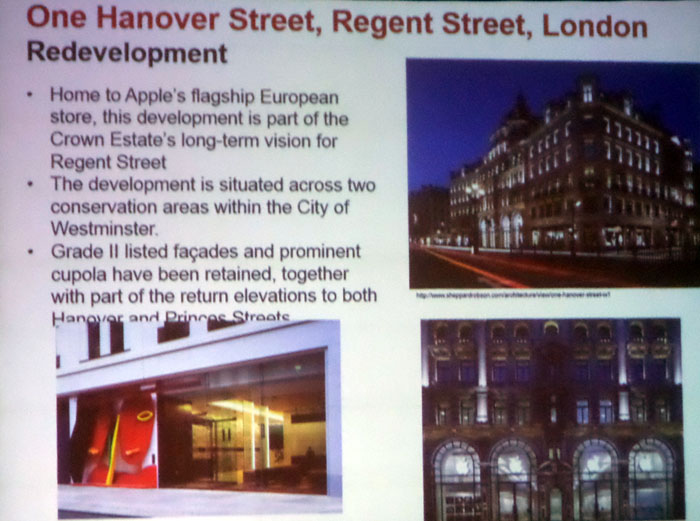 Наприклад, на Рідж Стріт, яка веде на площу Пикадили, тут заборонені вивіски, все дуже суворо – і в магазинах вивішують рекламу і назви тільки у вітринах. Ще приклади – Окфорд Стріт, Ханновер Стріт. Скрізь тут ідея – зберегти старе, додати нове і зробити це комерційно привабливим. Тут, за рідкісним винятком, стоять будинки XIX століття, у вікторіанському стилі заввишки 4-6 поверхів. При цьому надбудова мансард в Лондоні вважається цілком прийнятною, в них, наприклад, влаштовують дворівневі квартири. Але все робиться дуже ретельно, щоб дотримати бренд.