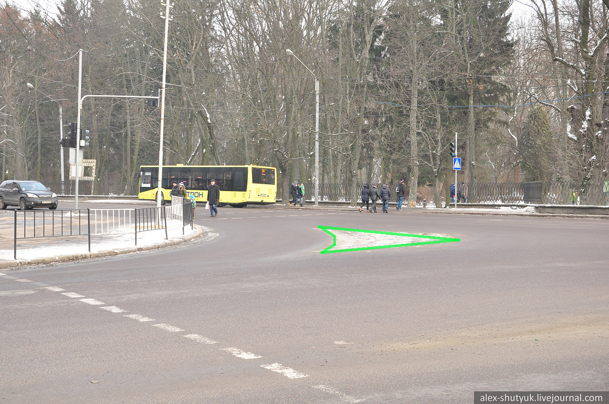 Ще ракурс. Як видно, тут утворюється досить чіткий острівець, що відділяє правоповоротну смугу від тих, хто їде Стрийською прямо.