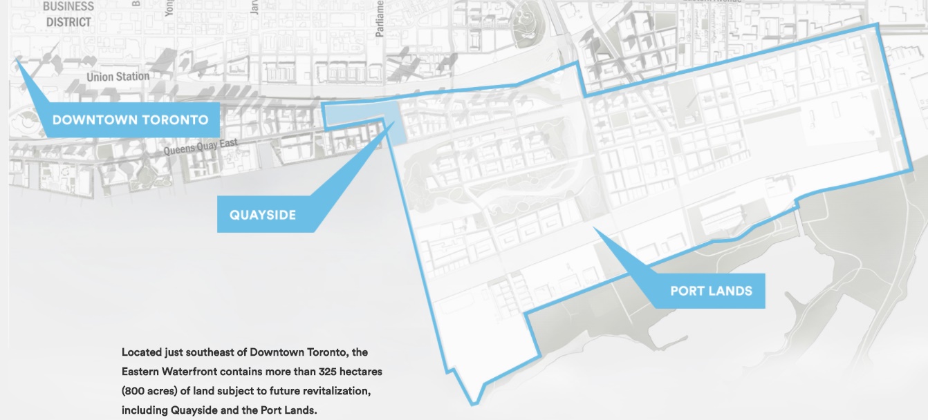 Державні чиновники зібралися в Торонто, щоб оголосити, що Sidewalk Labs, https://www.sidewalklabs.com/ дочірня компанія корпорації Alphabet, буде проводити реконструкцію на площі 12 акрів південно-східної набережної. Сьогодні в цьому районі розташовано кілька промислових будівель і паркувальних місць. Всього через кілька років тут буде технологічне співтовариство під назвою Quayside. Sidewalk Labs вже виділила 50 мільйонів доларів на проект, а Google перенесе штаб-квартиру в околиці Торонто. Як тільки компанія доопрацює концепцію, вона планує розширити перепланування на весь район набережної площею 800 акрів.
